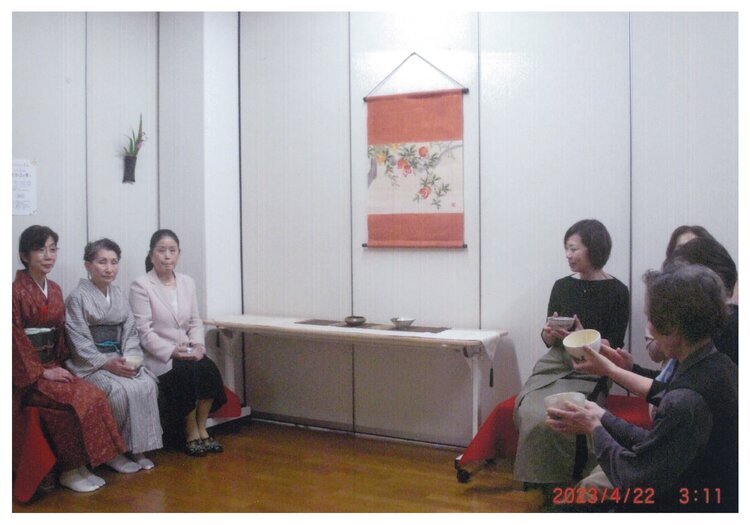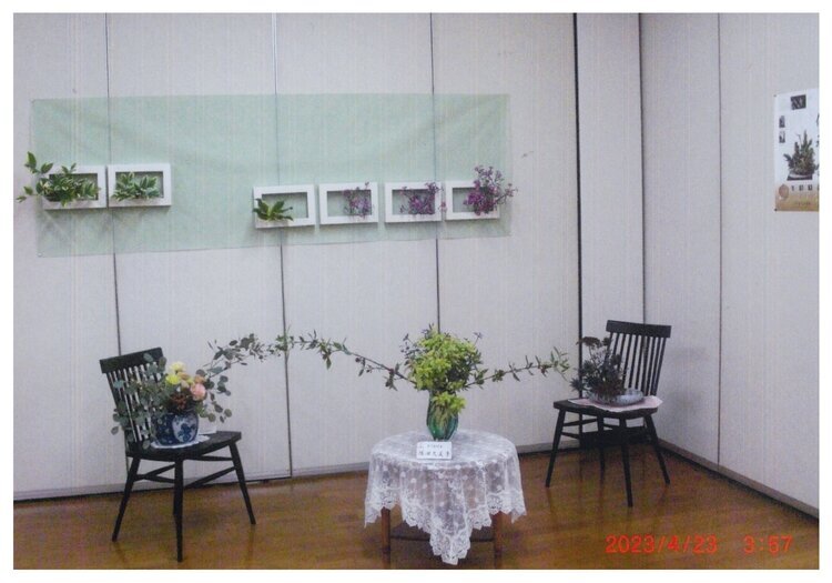 また、今回は会員の中にお茶をなさる方がいらっしゃり、来場者の方々にお茶席をご案内すると「こんなところでお茶を頂けるなんて嬉しい」と大変喜んでいただき、今年もお花とお茶に癒された2日間になりました。