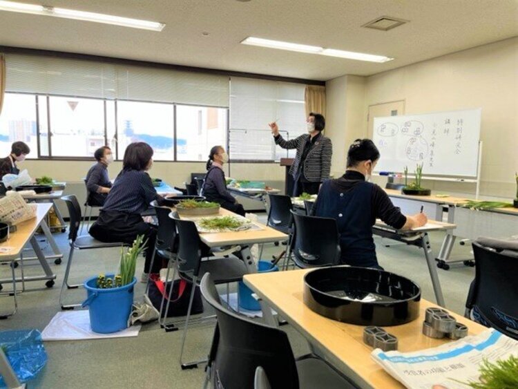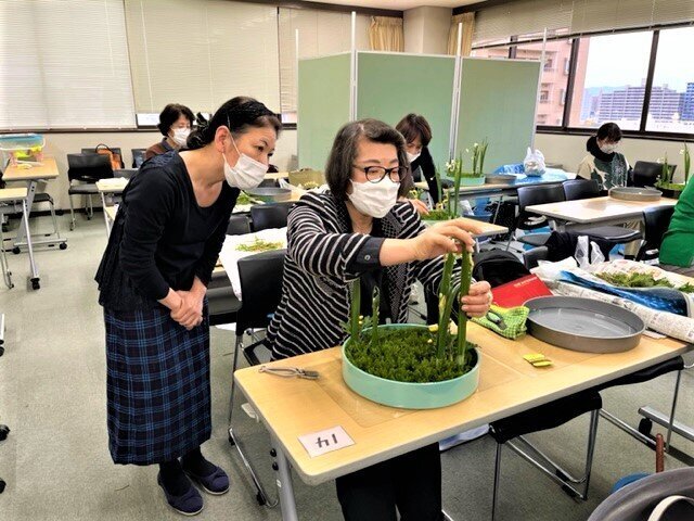 広島支部特別研究会 水仙講習会(広島支部) 支部 シェア Tweet 開催場所 広島県健康福祉センター 開催期間 2022.12.04 ~ 2022.12.04 誰もが憧れる水仙の凛とした立ち姿ですが、4枚の葉がきちんと揃って立ち上がるのは中々難しいことです。小見山先生はポイントを分かりやすくまとめてご指導いただき、「始めて葉組ができた」「参加してよかった」といった声が沢山聞こえ、充実したお勉強会となりました。