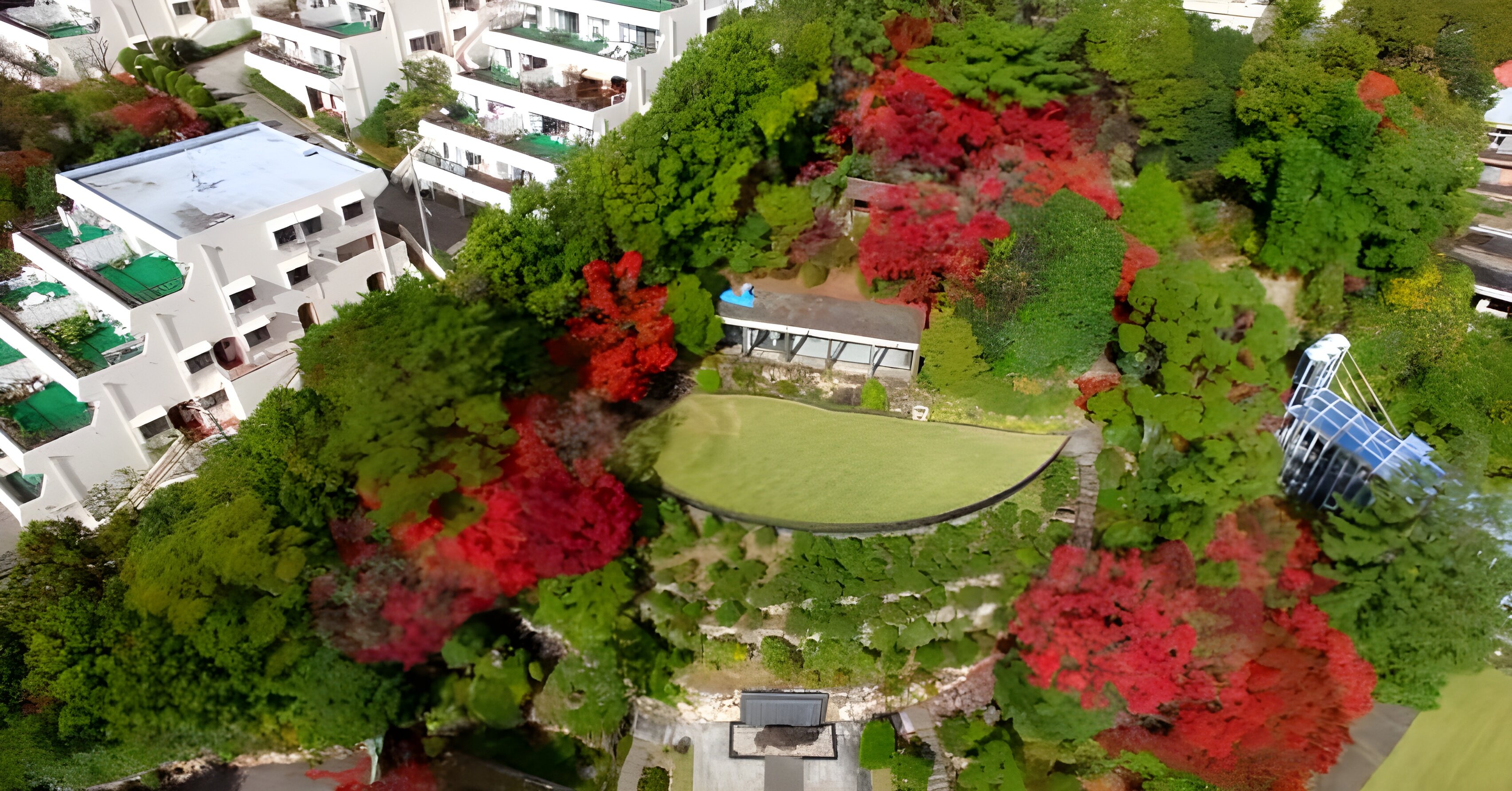 神戸・御影の地に、小原流家元会館と盛花記念館が竣工したのは、1962年(昭和37)。三世家元小原豊雲が、戦後の日本を代表する建築家、清家清氏に設計を依頼し、10年弱の年月をかけて建設されたものです。急勾配の傾斜地に、埋め込まれるようにつくられた独特な構造をした家元会館は、豊雲の熱い思いに、清家清氏が意欲的に応えたユニークな建物となりました。